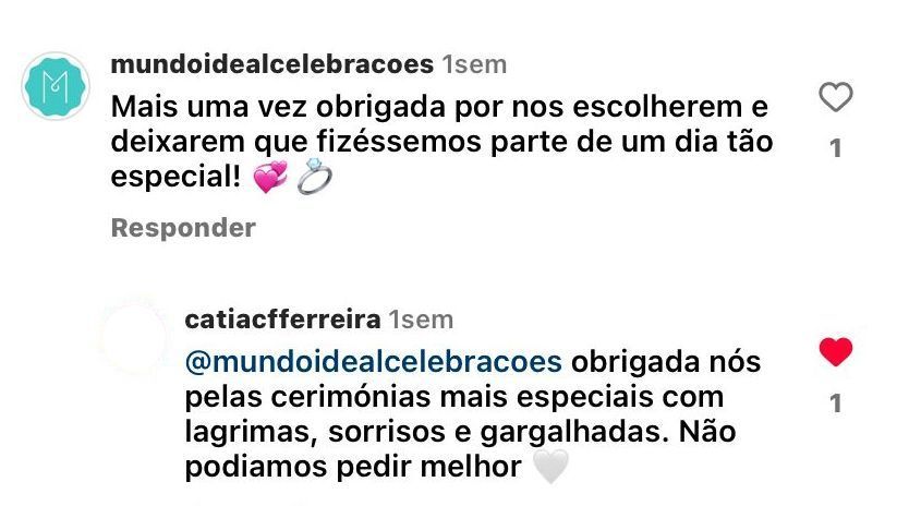 Somos apaixonados por celebrar o amor em todas as suas formas e por fazer parte de histórias tão especiais como a vossa.